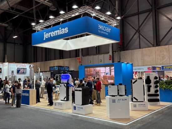 Los asistentes pudieron conocer en detalle la gama Ekkoair by Jeremias, una línea concebida para optimizar la eficiencia energética y simplificar los montajes en obra. La solución más destacada fue su sistema multiboca patentado, que permite hasta doce conexiones directas de conducto semirrígido Ekkoflex al recuperador, eliminando por completo la necesidad de cajas de distribución. Este avance supone una reducción significativa en tiempos de instalación, consumo de material y costes asociados, al tiempo que mejora la adaptabilidad del caudal al uso real de cada estancia.