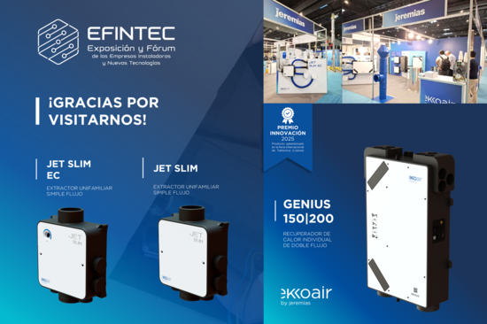 Del 8 al 9 de octubre participamos en EFINTEC 2025, la Exposición y Fórum de las Empresas Instaladoras y Nuevas Tecnologías, donde presentamos nuestras soluciones avanzadas de ventilación y sistemas con resistencia al fuego.